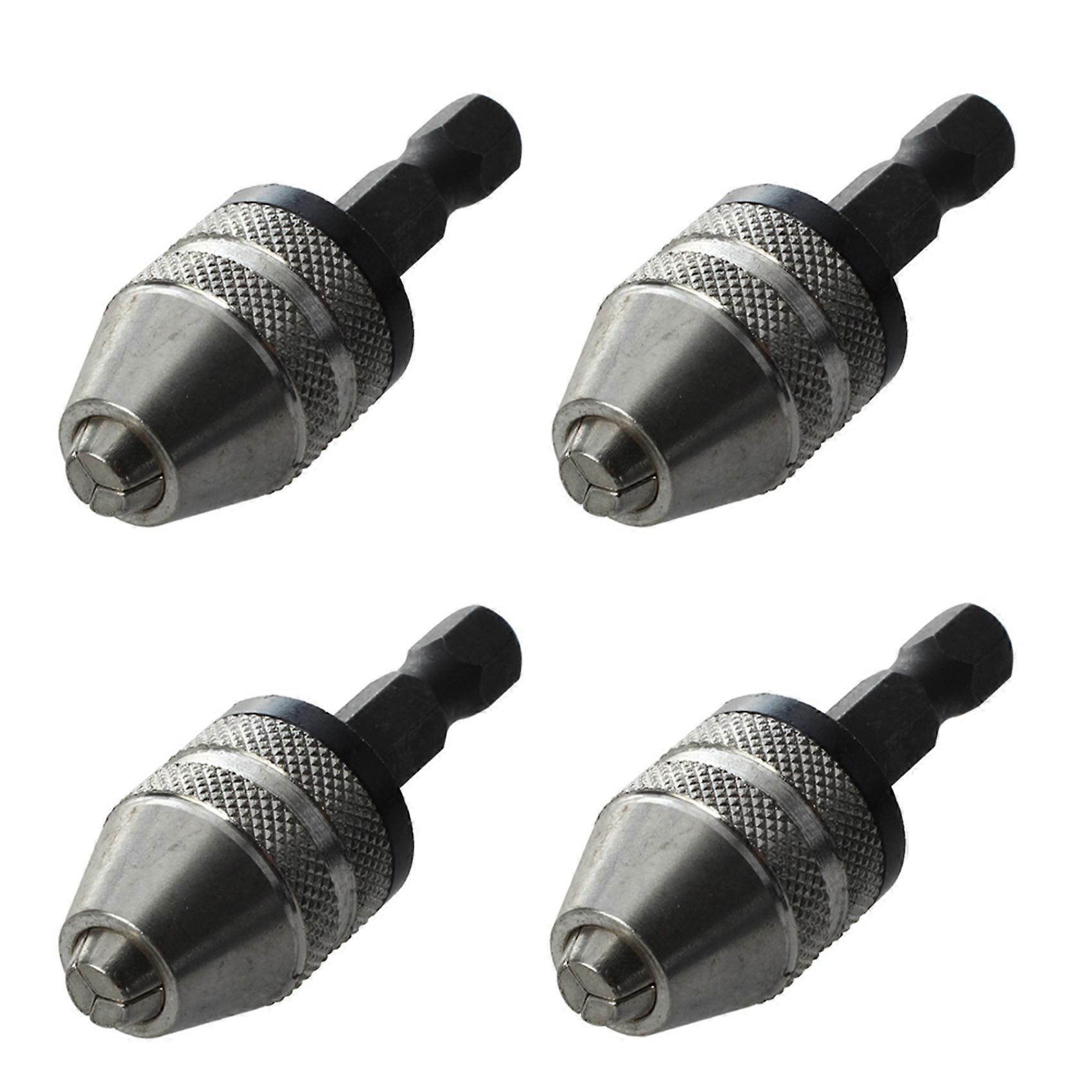 4X Silver+Black 6mm Keyless Drill Bit Chuck Quick Change Adapter Converter Hex Shank