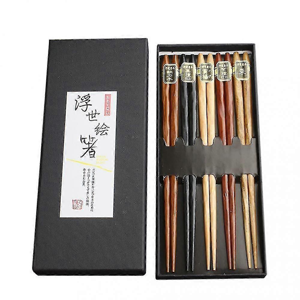 5 Pairs Japanese Chopsticks Natural Beech Chopsticks Chinese Set Wood