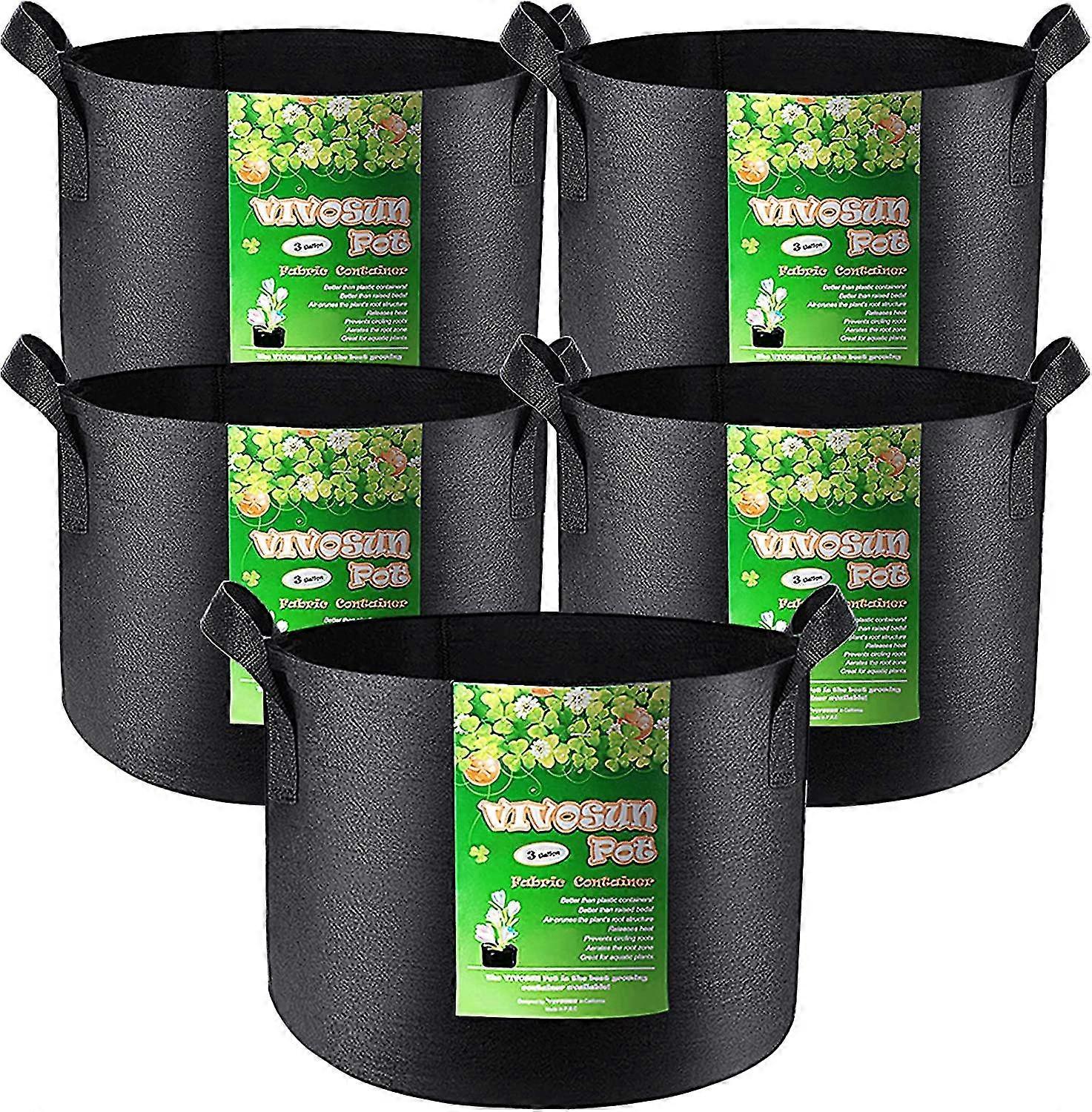 5-pack 3 Gallon Plant Grow Bags Heavy Duty Thickened Nonwoven Fabric Pots With Handles