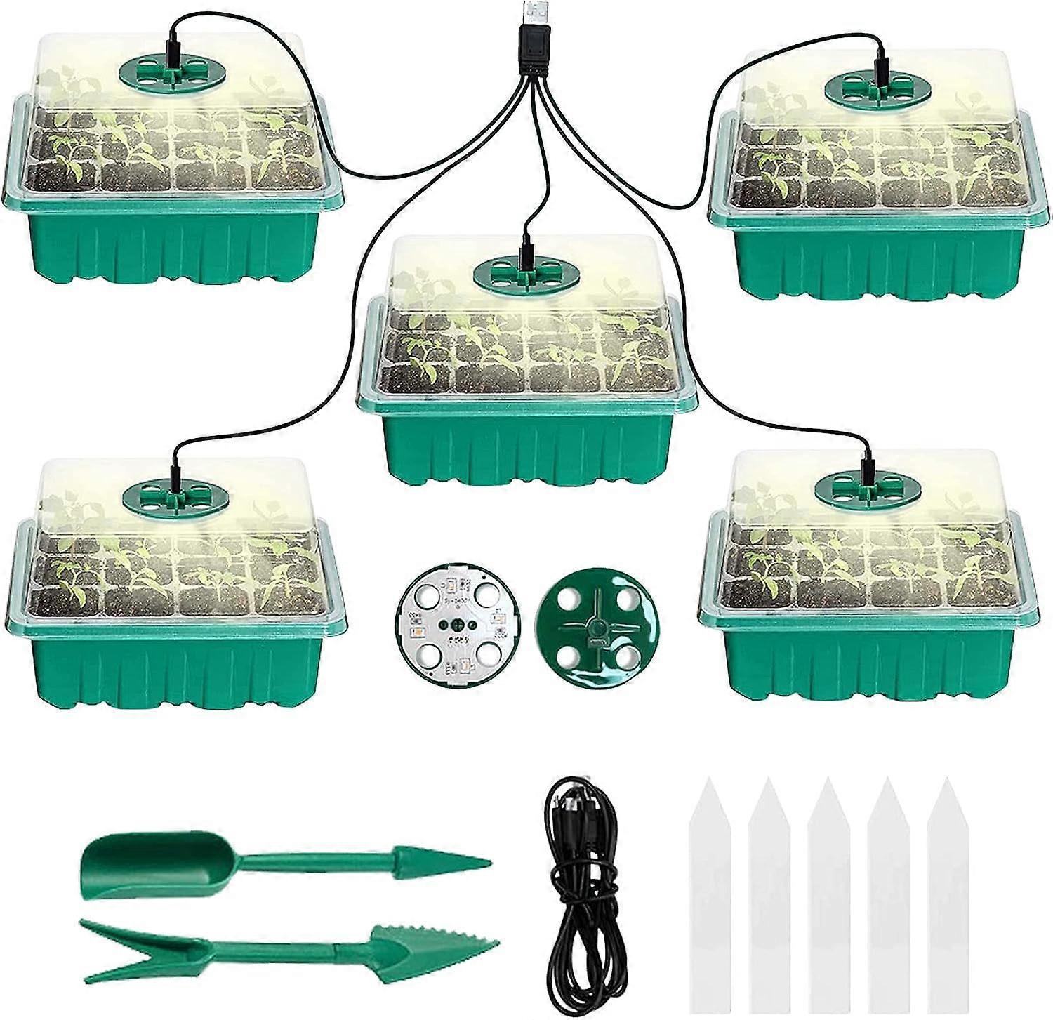 5 Pack Seed Trays, Propagator with Heightened Lids, Cells Propagator Growing Thicken Seedling Starter Growing Trays with Clear Lids and Grow Light for