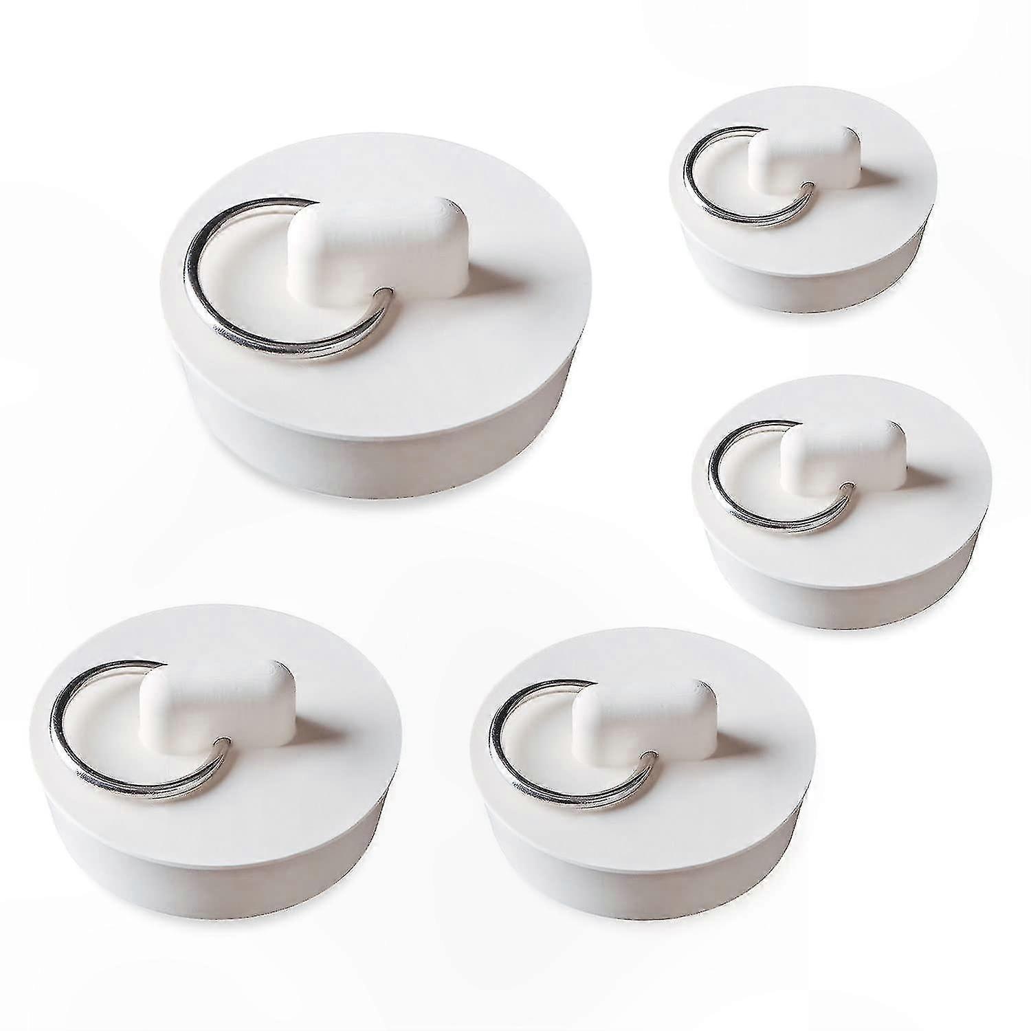 5-Pack White Bathtub Plugs and Sink Stoppers in Assorted Sizes for Home Use