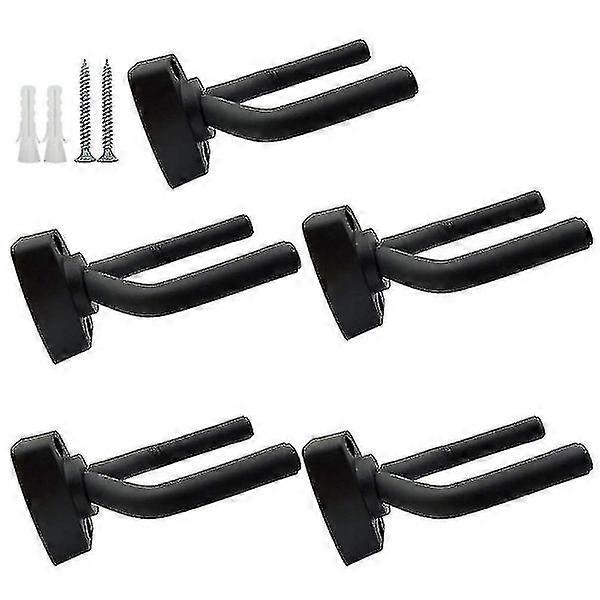 5-pack of black guitar hangers Wall-mounted display with screws Fits guitars