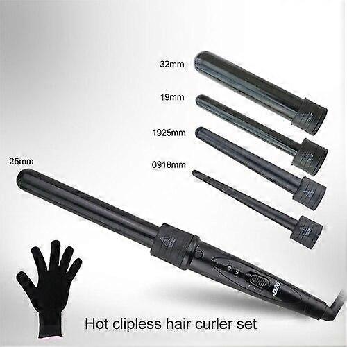 5 In 1 Hair Curlers Care Styling Curling Wand Interchangeable 3 Parts Clip Hair Iron Curler Set Curler Hair Styles Tool|hair Curler Set|tool Tooltool In 1(Black) product description 1.5 in 1 tube 100% tourmaline ceramic package, size 09-18mm, 19-25mm, 25-25mm, 19mm-19mm, 32mm-32mm; 2.PTC fever, rapid warming, Plastic bracket 4. Simple operation, pull button; 5. Insert the tube with self-locking function; 6.LED lamp temperature to choose a file 150 degrees Celsius (300 degrees Fahrenheit), 2 files 210 degrees Celsius (410 degrees Fahrenheit) 7. wire and fuselage color the same; 8. Universal 100-240V dual voltage; 9.360 ° Rotate 2.5M power cord