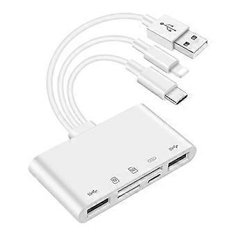 5-in-1 USB Hub Lightning 2xUSB SD TF Card Reader Adapter with Type-C USB Lightning Port