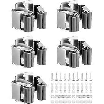 5 Piece Mop Broom Holder, Mop Holder Wall Mounted, Broom Grab Holder, for Bathroom Kitchen Office Closet Garden Garage