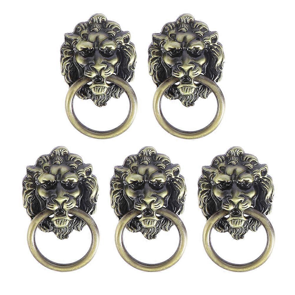 5pcs Lion Head Pull Handles Cabinet Pull Knobs Zinc Alloy Rings Pull Handles