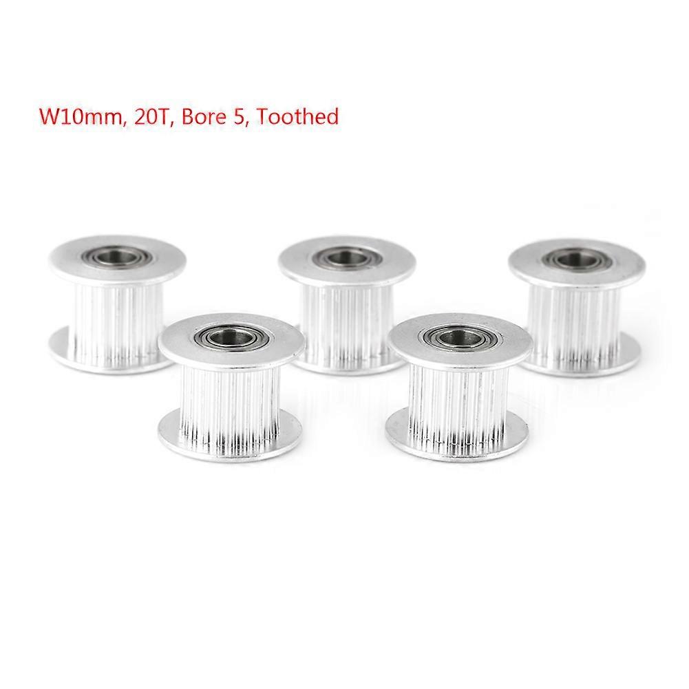5pcs Aluminum 2GT Belt Timing Pulley 3D Printer Accessory (W10mm, 20T, Bore 5, Toothed)