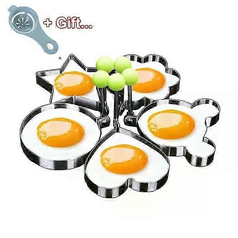 5pcs Egg Mold Ring Stainless Steel Round/Heart/Flower/Five-Pointed Star and Mickey Mouse Shaped Egg Mold Ring Kitchen Utensil