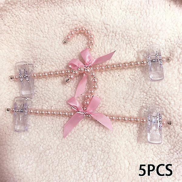 5pcs Pearl Clothes Hangers with Bow - Non-Slip Plastic Faux Pearl Clothes Racks for Children