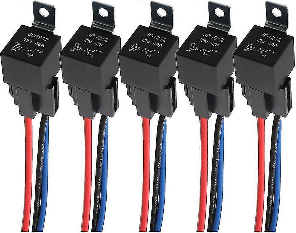 5pcs Professional 4 Pin Car Relay, 12v 40a Spst Auto Relay With Colorful Wire Harness, For Car Truck Motorcycle Boat (black) (hy)