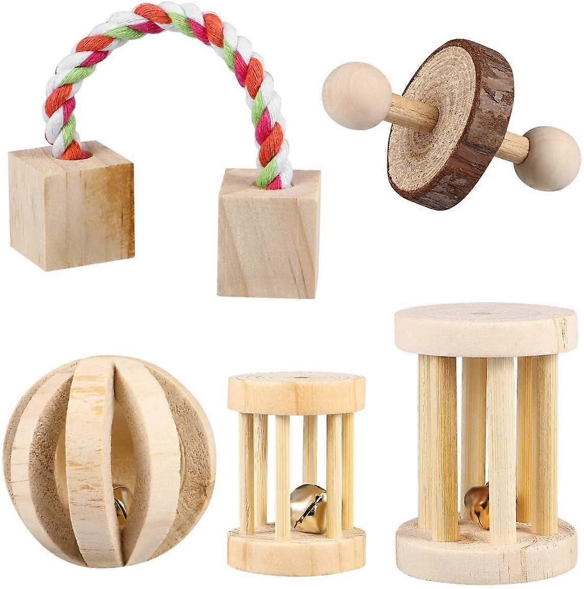 5PCS Hamster Chew Toys Natural Wooden Toys Exercise Bell Roller Teeth Care Molar Toys for Bunny