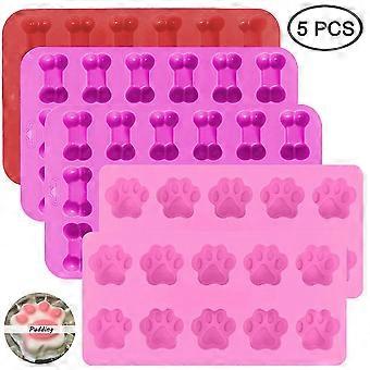 5 Pcs Silicone Chocolate Candy Molds, Puppy Paw & Bone Non-stick Baking Molds Ice Cube Trays