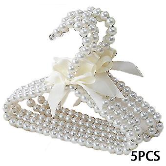 5pcs Pearl Clothes Hanger With Bow Non-slip Plastic Faux Pearl Clothes Rack Children Clothing Supplies