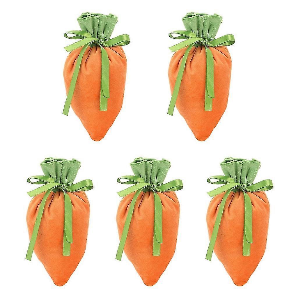 5pcs Easter Carrot Shape Velvet Gift Bag Drawstring Treat Bag For Easter Party