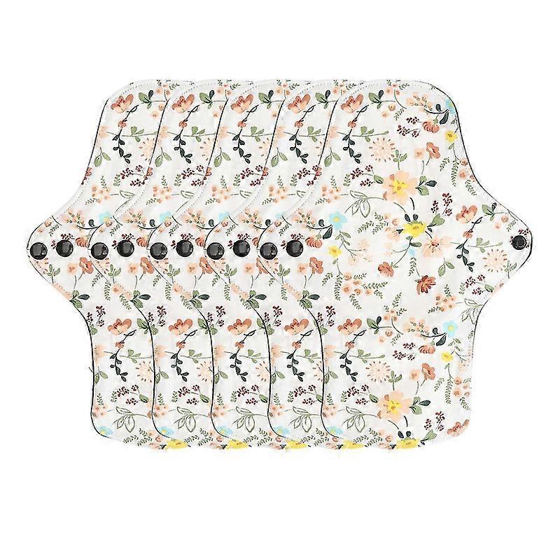 5pcs Washable Breathable Menstrual Pad Flower Pattern Super Absorbent Reusable Cotton Sanitary Pad Panty Liners-M-