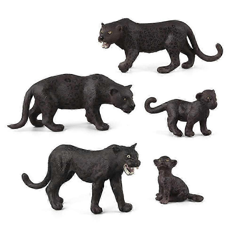 5Pcs Black Panther Plush Toy, Wild Life Animal Figures, Leopard Model Set