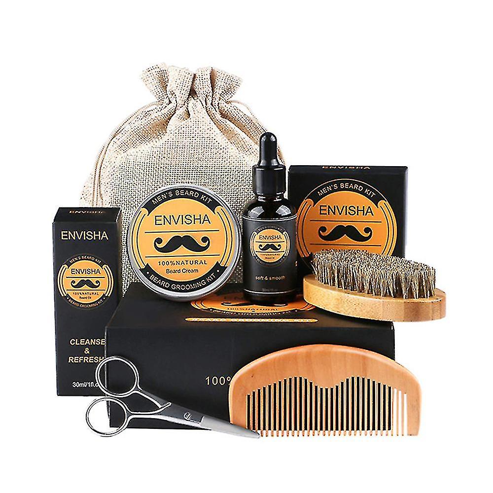Package Included1* Beard Growth Oil1* Beard & Mustache Balm1* Micro Needle Roller1* Wood Comb1* Drawstring Bag5Pcs/Set Men Beard Grooming Kit5-in-1 Mustache & Beard Styling Tools Beard Oil Beard Balm Beard Brush Bead Comb Beard Scissors Beard Care Set Men GiftFeatures1.PREMIUM MATERIAL:Natural and mild ingredients can effectively stimulate the skin cells to accelerate the beard growth or reduce hair loss conditions, non-toxic and safe,no flavorsorpreservatives are contained,can be widely applicable to most people without hurting your skin.2.BEARD OIL & BALM:Effectivelybring up soothing and calming feelings, you can combine them together to smooth and style your beard easily.3.BEARD BRUSH & COMB: Adopt premium boar bristle brush and natural bamboo handle, flexible to untangle the knots from root to end for a well-manicured beard.4.BEARD SCISSORS: Tough and solid stainless steel material, no rust and scratch resistant for long time use.5.MULTIFUNCTIONAL BEARD GROOMING KIT:5-in-1 mustache and beard styling tools let you be ready for beards of all sizes, ideal gift for Fathers Day, Christmas, his birthday, or any other special occasion and event.Specifications[Beard Growth Oil]Net Content: 1 fl oz/30mlBottle Diameter: 3.3cmBottle Height: 10.2cmIngredients: Argan Oil,Jojoba Oil,Vilamin E, Tea Tree Oil,Grape Seed Oil[Beard & Mustache Balm]Net Content: 60gCase Diameter:7.0cmCase Height: 2.7cmIngredients: Beeswax,Argan Oil,Jojoba Oil,Vitamin E,Tea Tree Oil,Shea Butter,Grape Seed Oil,CoconutNotePlease allow some deviation due to manual measurement and make sure you do not mind before purchase.The color of the actual item may slightly vary from the images due to different computer screens and display settings.Thanks for your understanding