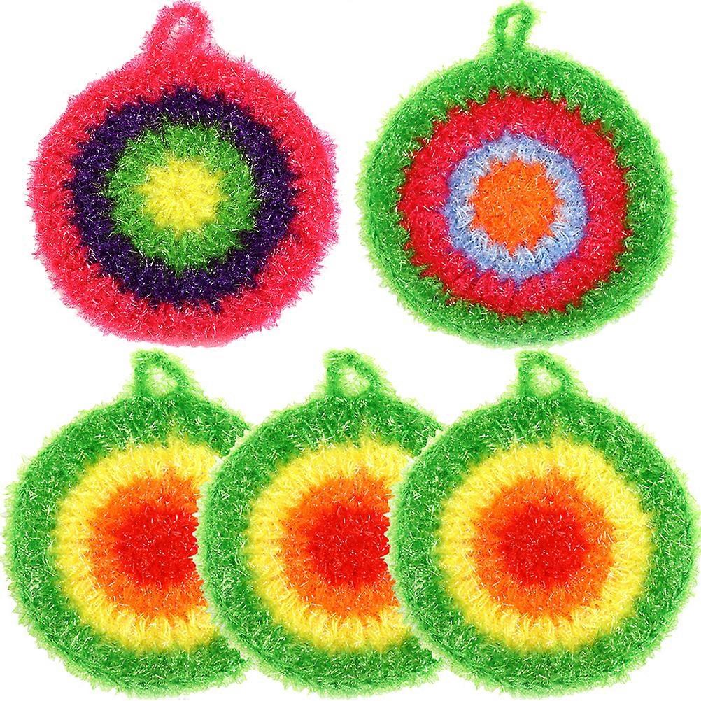 5Pcs Round Dish Towels Kitchen Cleaning Towels Thick Tableware Washing Cloth Hanging Cleaning Cloth