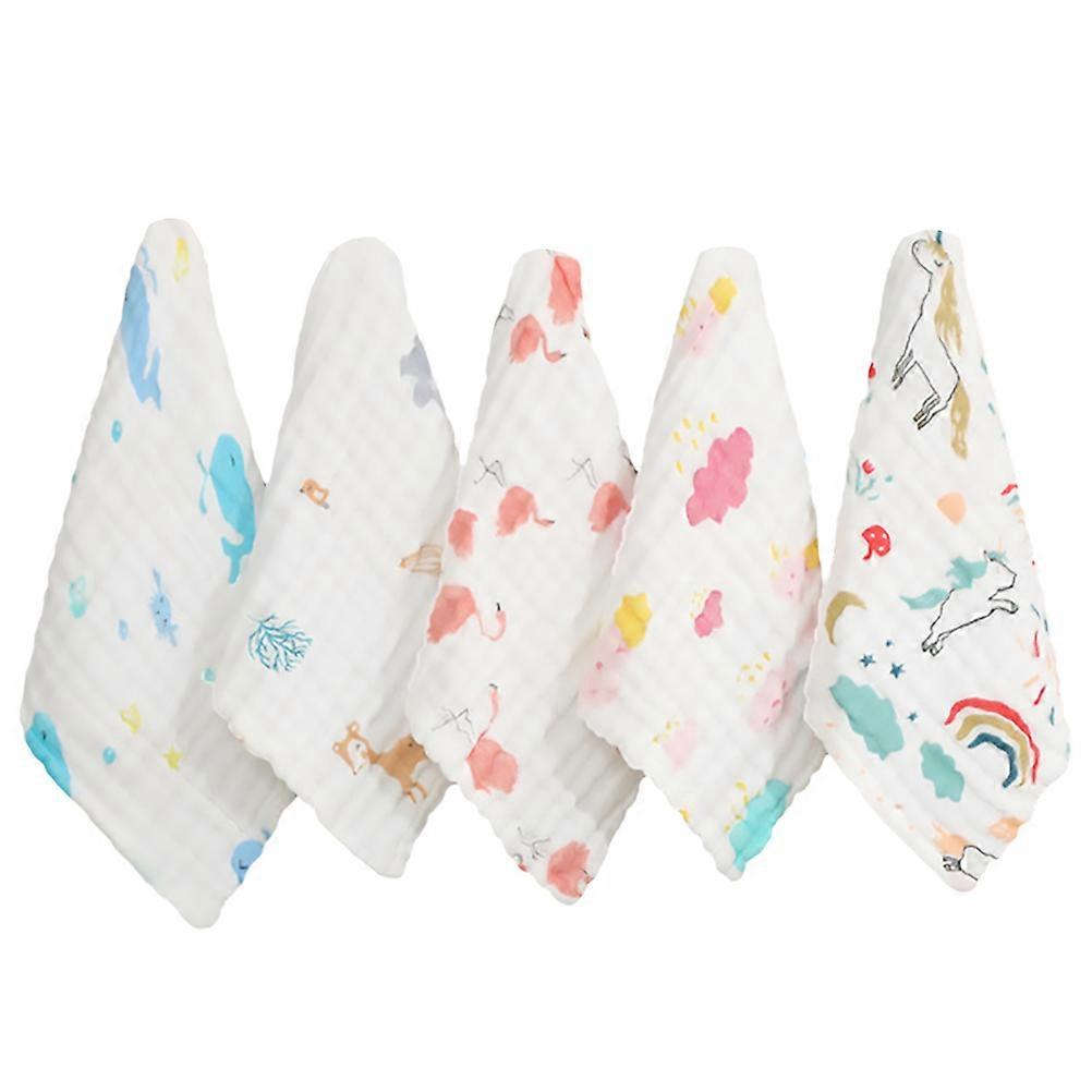 5pcs Soft Muslin Washcloths for Newborns Lightweight, Quick Drying, Absorbent, Organic Cotton, Chemical Free, for Bathing & Teething Care