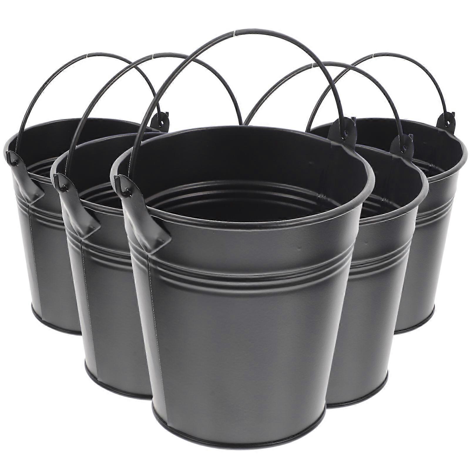 5Pcs Iron Flower Pot With Handle Small Garden Plant Pot For Decoration 11.3X10X10CM Black Rust-Proof