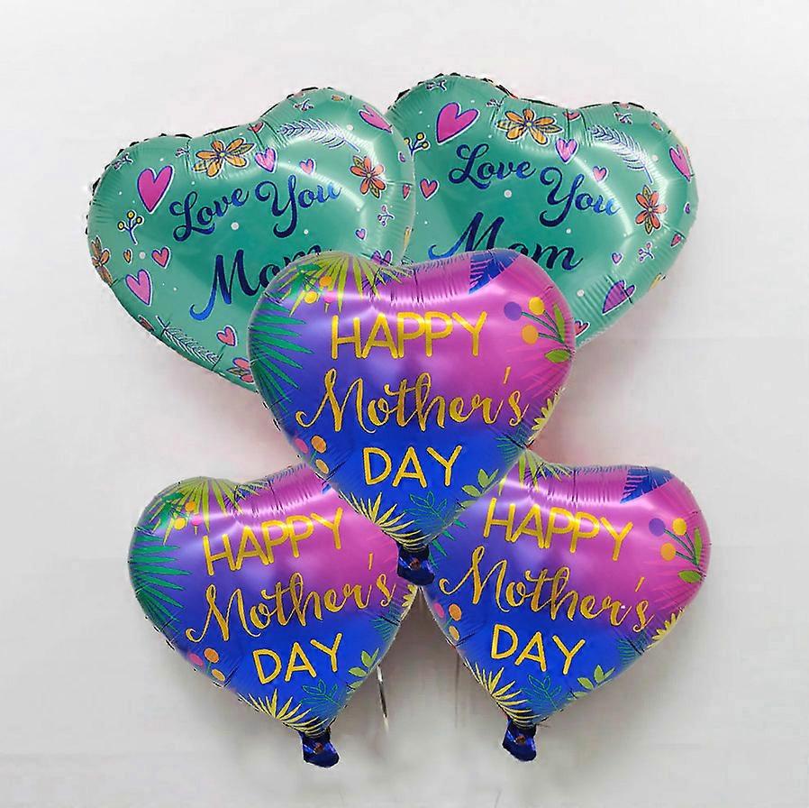 5pcs 18inch Happy Mother Day Decoration Balloon Heart Shape Love You Mom Foil Globos Mom Birthday Party Decor Mama Festival Gift