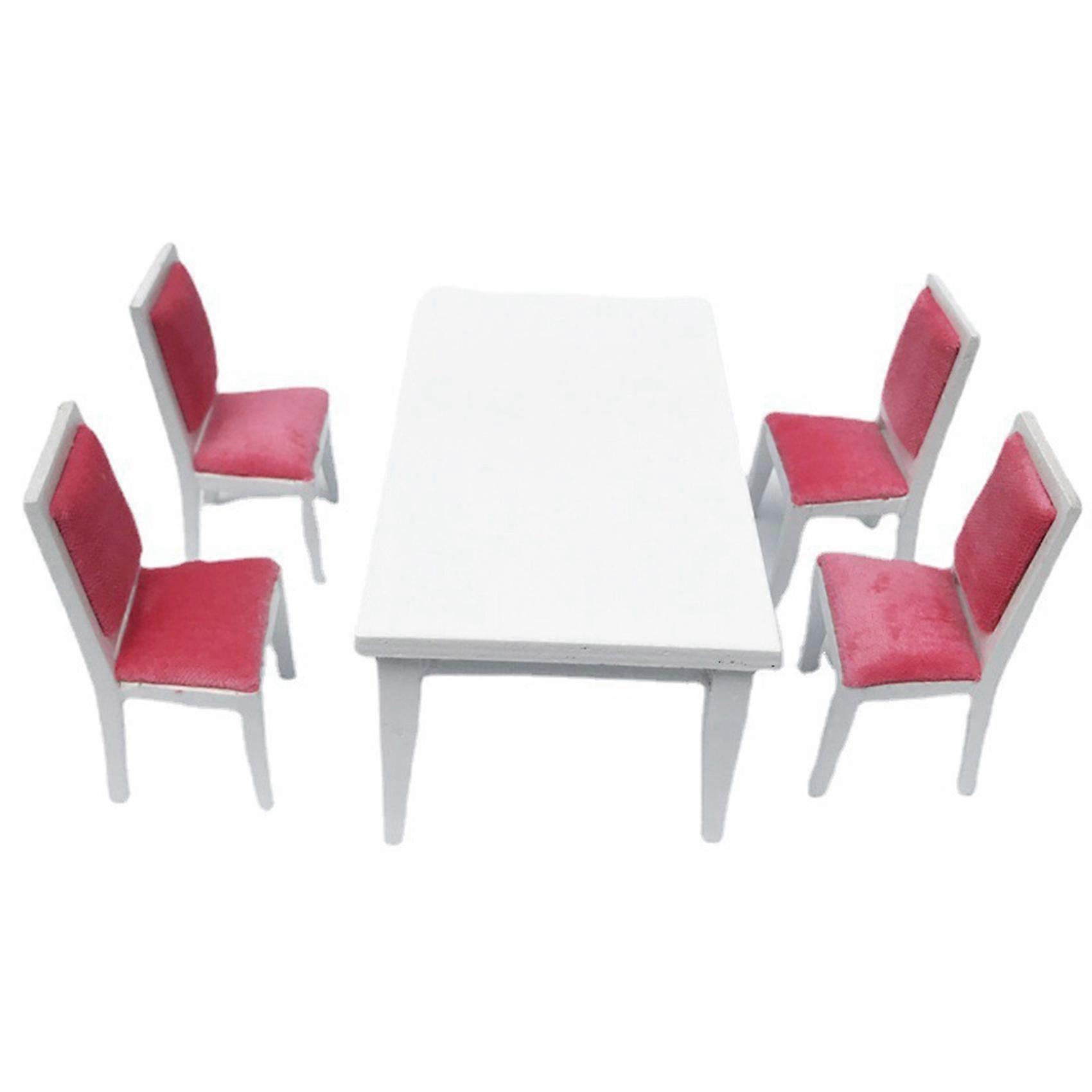 5pcs 1/12 Dollhouse Miniature Dining Table And Chair Wooden Set Doll Toy For Dollhouse Decoration A