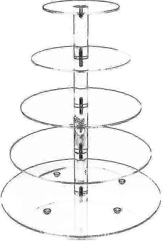 Acrylic Cupcake Stand 5 Tier Display Tower Tree For Stacked Serving Tray For Party Wedding Cake Dessert Clear Round Features: Size diameter 6 8 10 12.5 15inch for each plate,five tiers total height 17.5inchClear sturdy acrylic material,five tiers,simple design with large capacity,central rod 1.38inch for stabilityEasy to assemble and disassemble,nest design easy to compact storageBoth sides sticky with one paper as picture shown,so can protect the plate not scratched.Four rubber dumper including for bottom plate to prevent scratched
