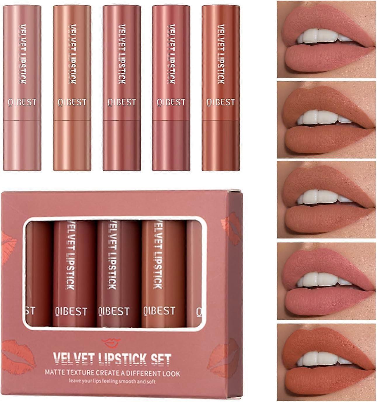 Nude Lipstick Matte Lipstick Set For Women, 5 Colors Matte Velvet Lipstick Set, Lightweight Soft Long Lasting Matt Lipstick Make Up Set
