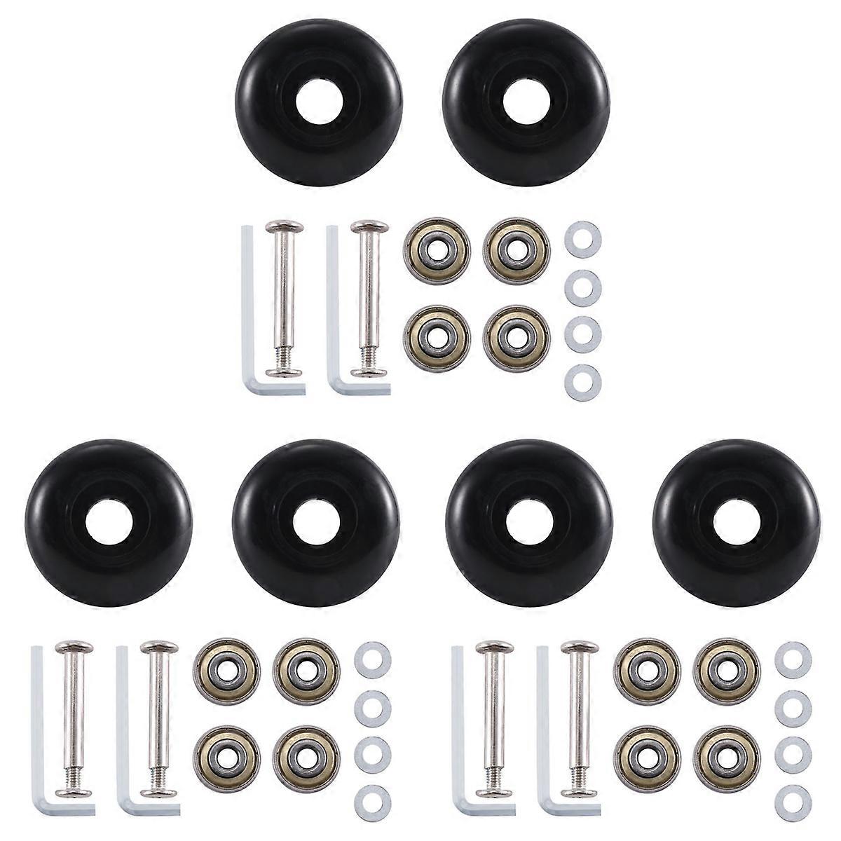 Upgraded accessories: the material is environmentally friendly PU material, and the bearing is made of carbon steel. SUPERIOR MATERIAL: Made of environmentally friendly PU and carbon steel,with wear-resisting and sound off wheel, giving you a quiet and convenient life. SIZE: The size of the luggage wheels replacement is replacement wheel OD: 50mm; wheel wide: 22mm; Center Bearing Internal Diameter Is 6mm/0.23inch please check the size carefully before placing the order. EASY INSTALLATION: You just need to remove the wheel with a hacksaw at the space, and then put on the with the included accessories. APPLICATION: The luggage wheels replacement kit is suitable for luggage case wheels, swivel caster, roller skate wheels, etc. Colour:black Material:PU+carbon steel Package Contents: 6 x luggage suitcase replacement wheels 6 x axles and screws 6 x screw wrenches 12 x carbon steel bearing 12 x Gasket Only the above package content, other products are not included. Note: Light reflection and different displays may cause the color of the item in the picture a little different from the real thing. The measurement allowed error is +/- 1-3cm.