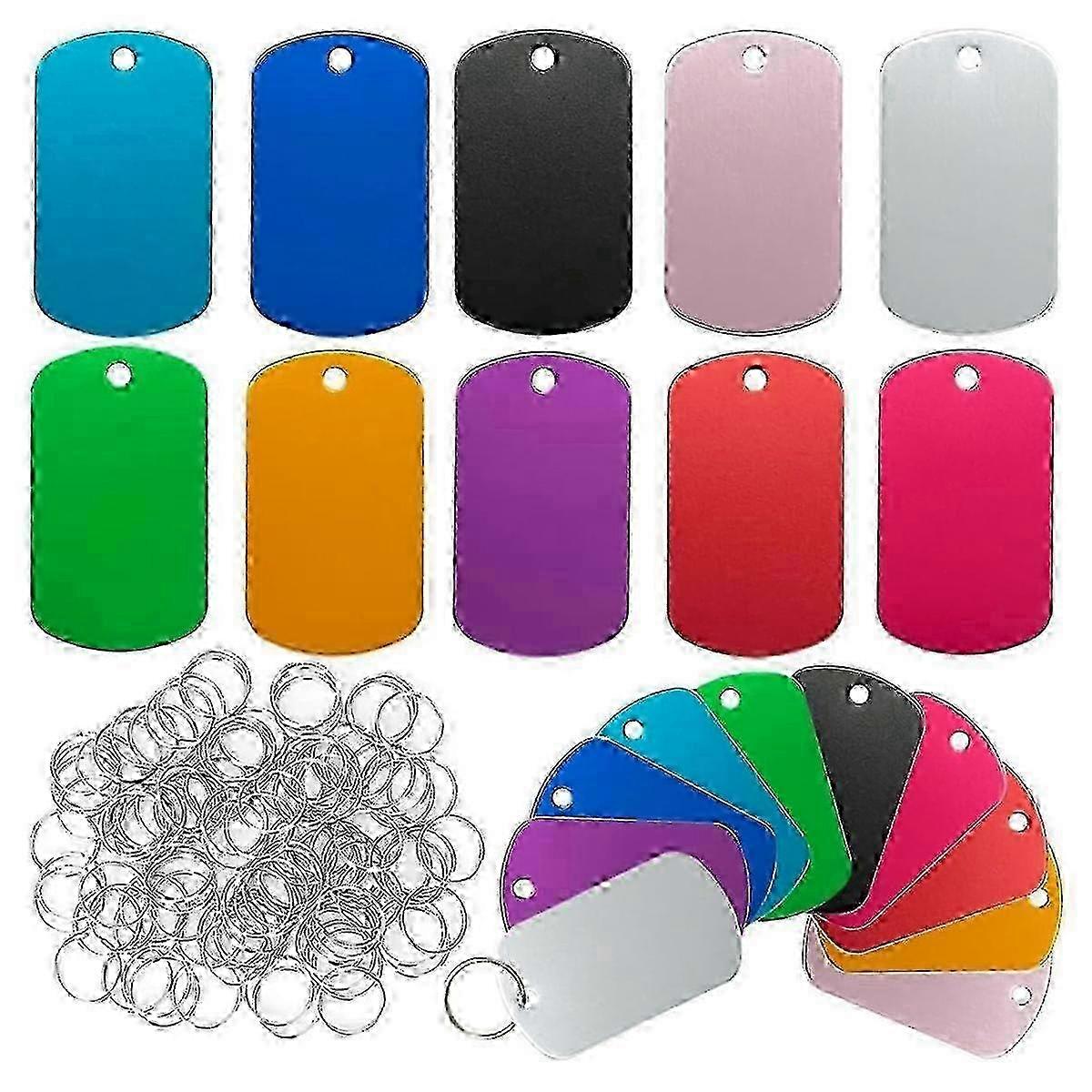50 Pack Aluminum Tag Blanks Engraving Blank Metal Tags with Hanging Hole Pet ID Double Sided Stampi