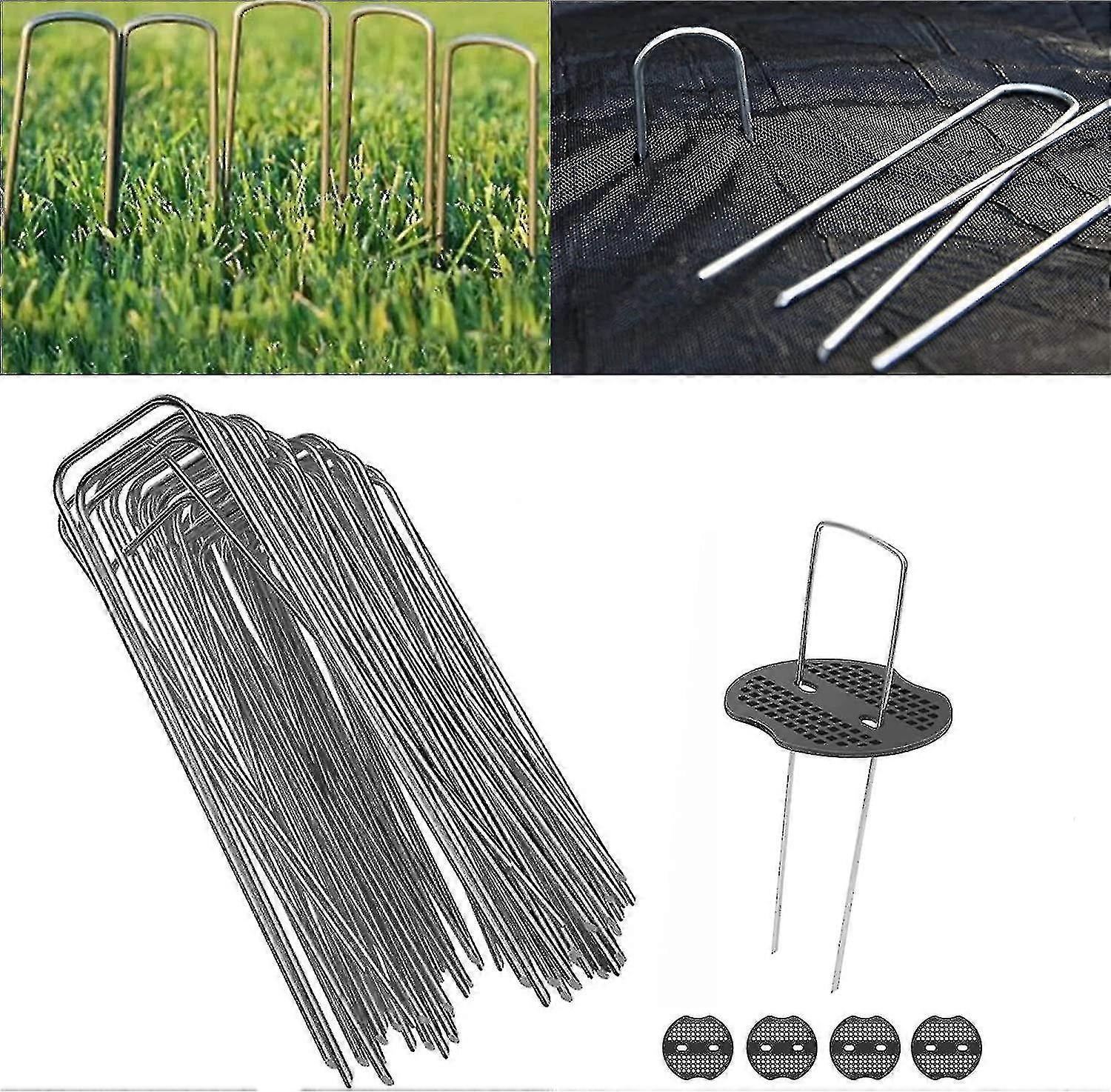SPECIFICATIONS - 2.5mm diameter, 15 long; 4 wide; Packing quantity: 50xU-shaped ground stakes, with 4pcs buffer washer, it can not only fix the four corners of the lawn beautifully, but also make it easier to remove.EXTRA-DURABLE GARDEN TRAPS - The High performance garden security stakes are the professional's first choice for firmly securing weed membrane, landscape fabric, netting, chicken wire, ground sheets, outer fleece and a wide range of other garden materials. landscaping firmly to the ground.HOT DIP GALVANIZED - For better rust prevention. Immersed in molten zinc, providing a thicker coating than electro-galvanized alternatives.VERY STRONG - Pointed and beveled ends for easier attachment and removal. Much less damage to fabric than barbed plastic stakes. The U-shaped design provides greater tension in the ground for excellent hold.MULTI-PURPOSE GARDEN TRAPS - Also ideal for a wide range of other outdoor uses, such as securing pipes, garden hoses and irrigation tubes along the ground. They can also be used with synthetic turf erosion control covers, lawn seedling mats and to help keep new plant cuttings in place to aid in more successful rooting.