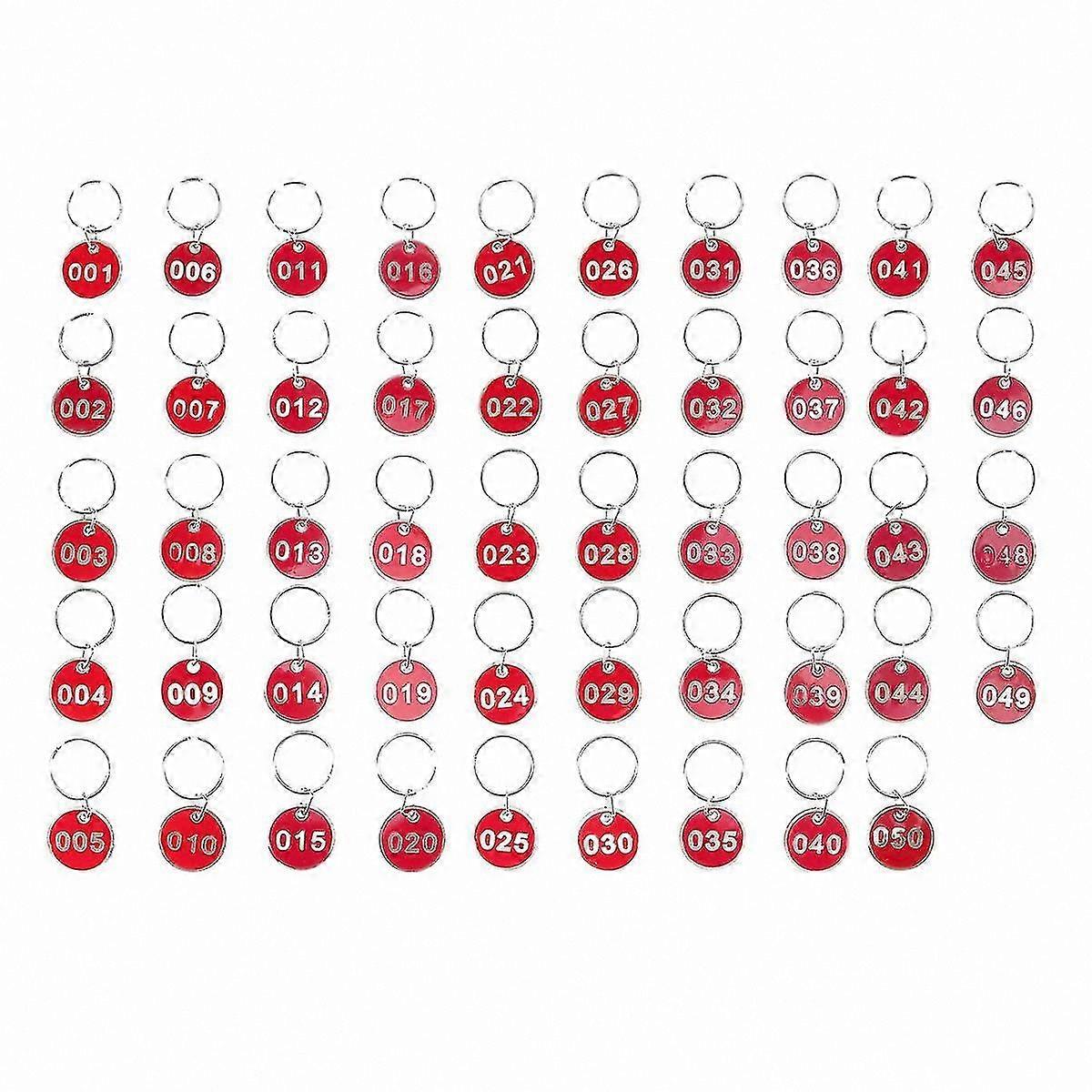 50 Pack Aluminum Storage Tags, Metal Number Plates for Luggage ID, Key Ring Labels (Red, Numbers 1-50)