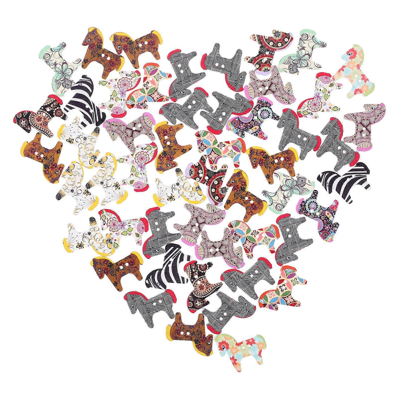 50pcs Cute Cartoon Horse Shaped Wooden Buttons for DIY Crafting, Sewing, Cardigans, Coats, Jackets, and Backpacks