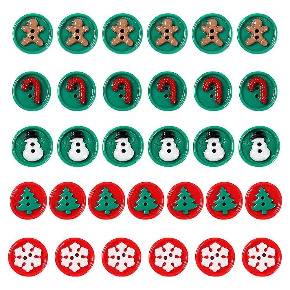 50pcs Christmas Resin Buttons DIY Sewing Accessories Snowman Tree Snowflake Gingerbread Candy Cane for Coats Sweaters Crafts