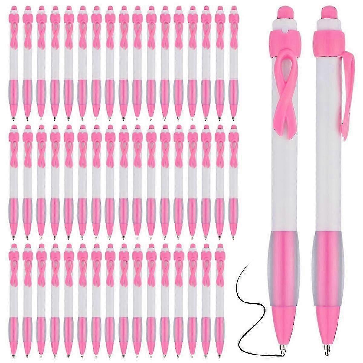 50 Pcs Pink Ribbon Pens Bulk, Black Ink Retractable Ballpoint Pens for Office Supply Women Gift