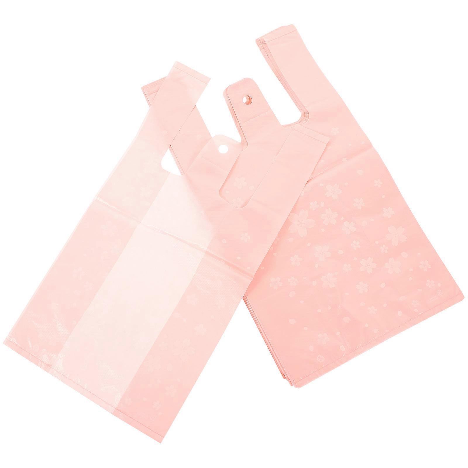50pcs Sakura Pattern Shopping Bag Foldable Grocery Bag Handheld Gift Bag for Home Use Pink Plastic