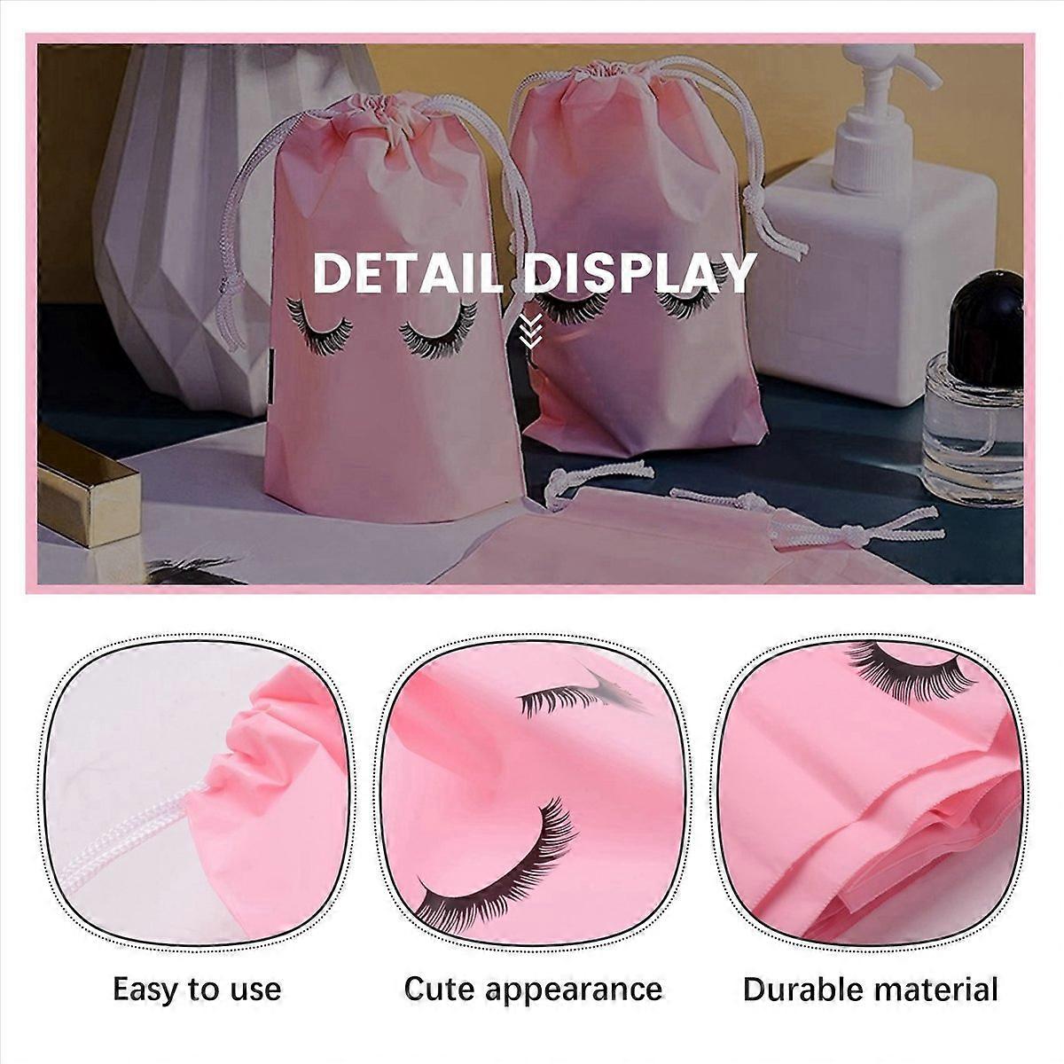 Sufficient Quantity: You receive 150 false eyelash bags; if you are a beauty salon owner, this false eyelash bag is suitable for showing your false eyelash products to customers; enough quantity can meet your needs EASY TO OPEN AND CLOSE: Plastic cosmetic bags are easy to use, each cosmetic bag is equipped with a drawstring, you just need to pull the drawstring and use it to open; the simple usage can a lot of time and effort. Cute Appearance: The cosmetic bag looks very cute, with a pair of eyelashes on the , it looks fashionable and elegant, and can quickly attract people's attention and eyes; at the same time, it is a classic color, looks bright and beautiful, giving you visual enjoyment. SIZE DETAILS: The size of the makeup eyelash bag depends on , which is convenient to use and carry; it is a good place to prevent small items from being lost and dropped; also, due to its small size and light weight, it is convenient to hold and use. Repairable Material: These travel after-sales bags are made of plastic, which is of , and , and the plastic is also waterproof; in addition, the plastic is also not easy to deform or break, and has a long service life, so you can use it with confidence size: M: 13 x 18cm Material: EVA plastic colour:pink Package Contents: 150 x Eyelash bags Only the above package content, other products are not included. Note: Light reflection and different displays may cause the color of the item in the picture a little different from the real thing. The measurement allowed error is +/- 1-3cm.