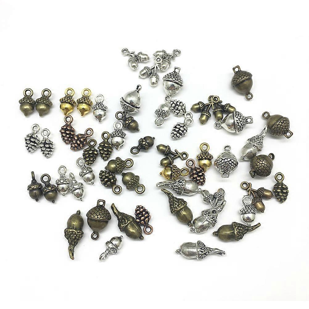 50Pcs Acorn And Pine Cone Charms Designed For Jewelry Making Assorted Color Accessories Perfect For Various DIY Projects