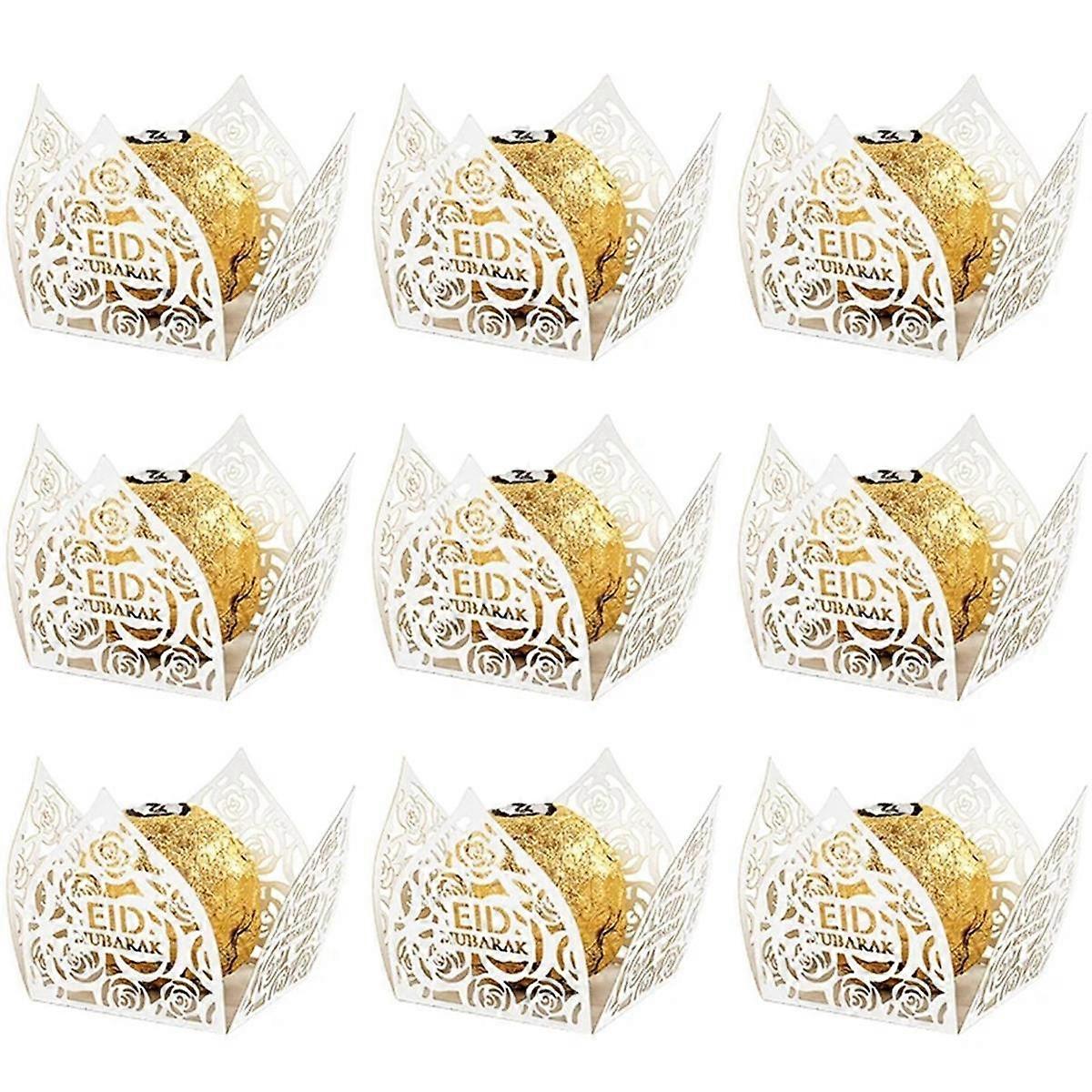 50Pcs Eid Mubarak Decoration Chocolate Wrappers Paper Candy Food Tray Box Ramadan Kareem Islamic Mu
