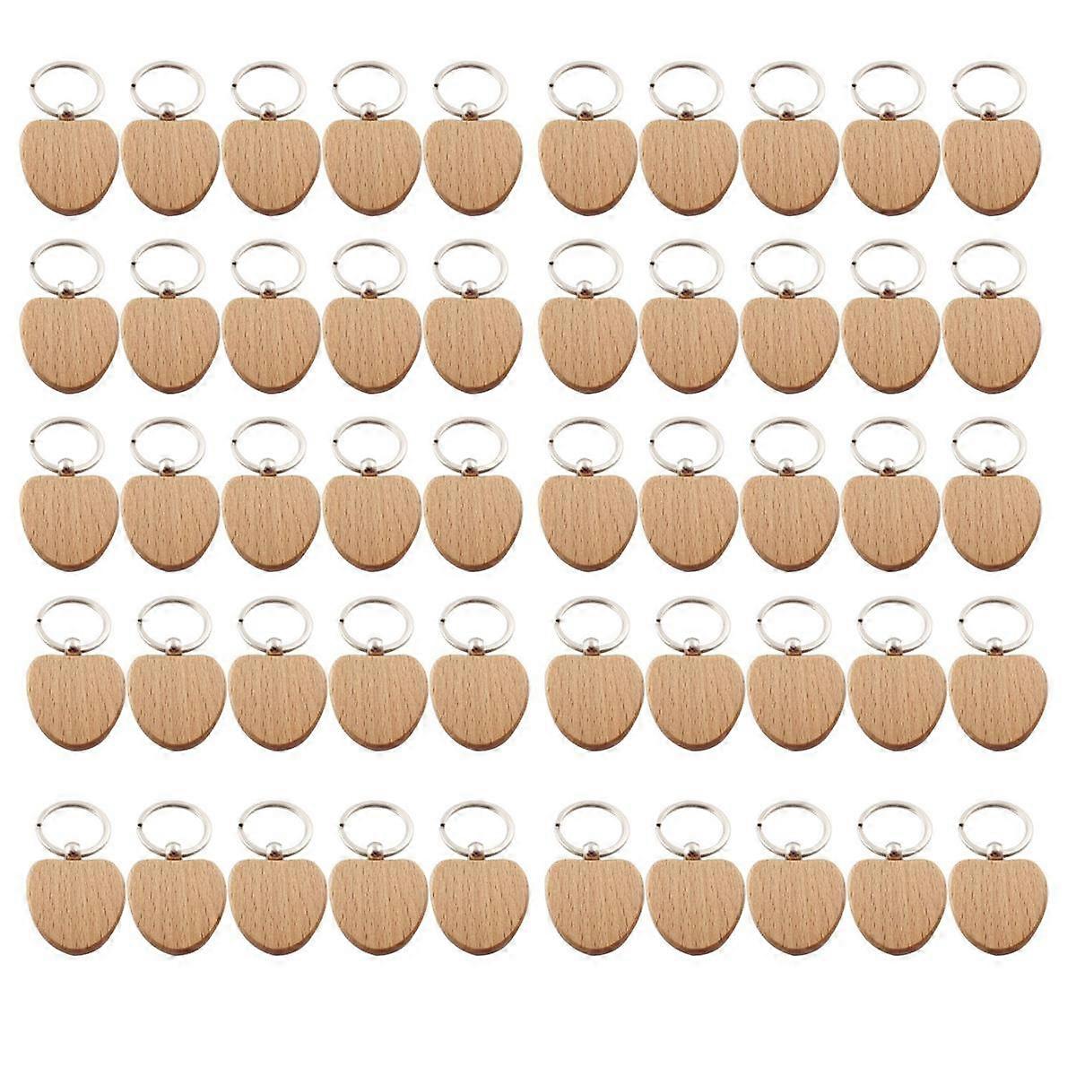 50Pcs Blank Wooden Heart-Shaped Key Chain DIY Wooden Keychain Tag Anti-Lost Wood Accessories Tags C