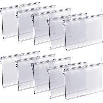 50 قطعة من حاملات الملصقات البلاستيكية الشفافة، رف سلكي، ملصق أسعار التجزئة، مشبك على سلة، لافتة عرض البضائع