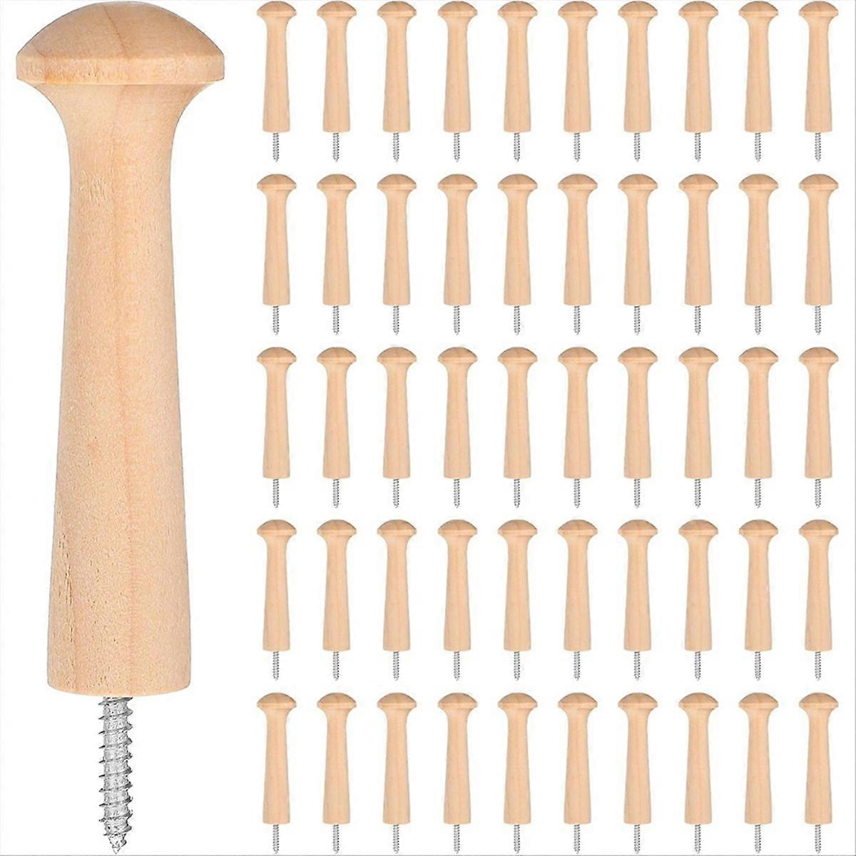 50 Pcs Wooden Shaker Peg Screw-on Pegs for Hanging Clothes Hats Towel