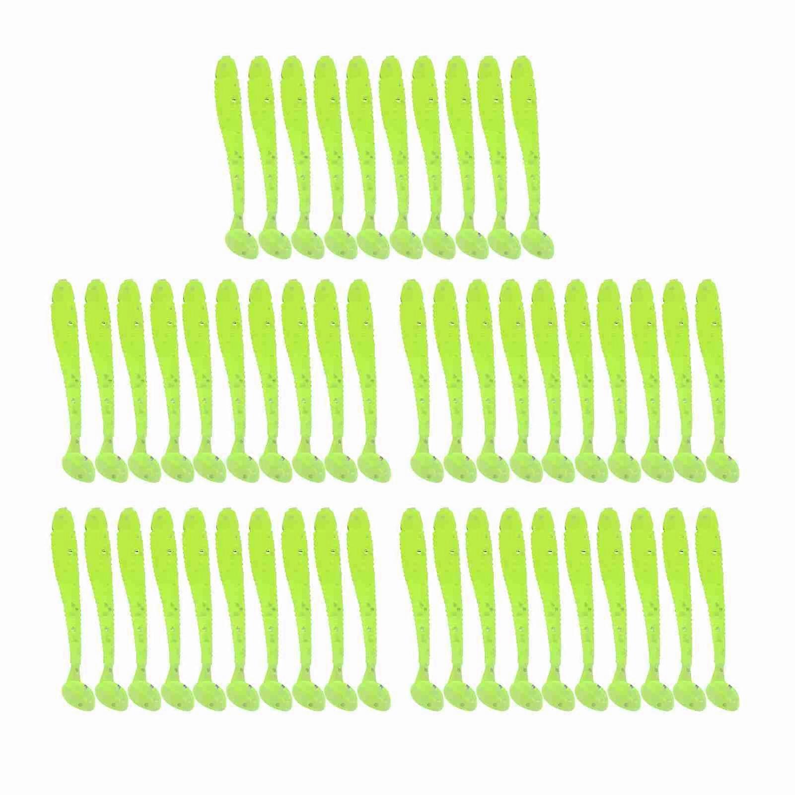 50PCS 5cm Soft Plastic Fishing Lures T tail Worm Baits Fish Tackle Accessory Fluorescent Green