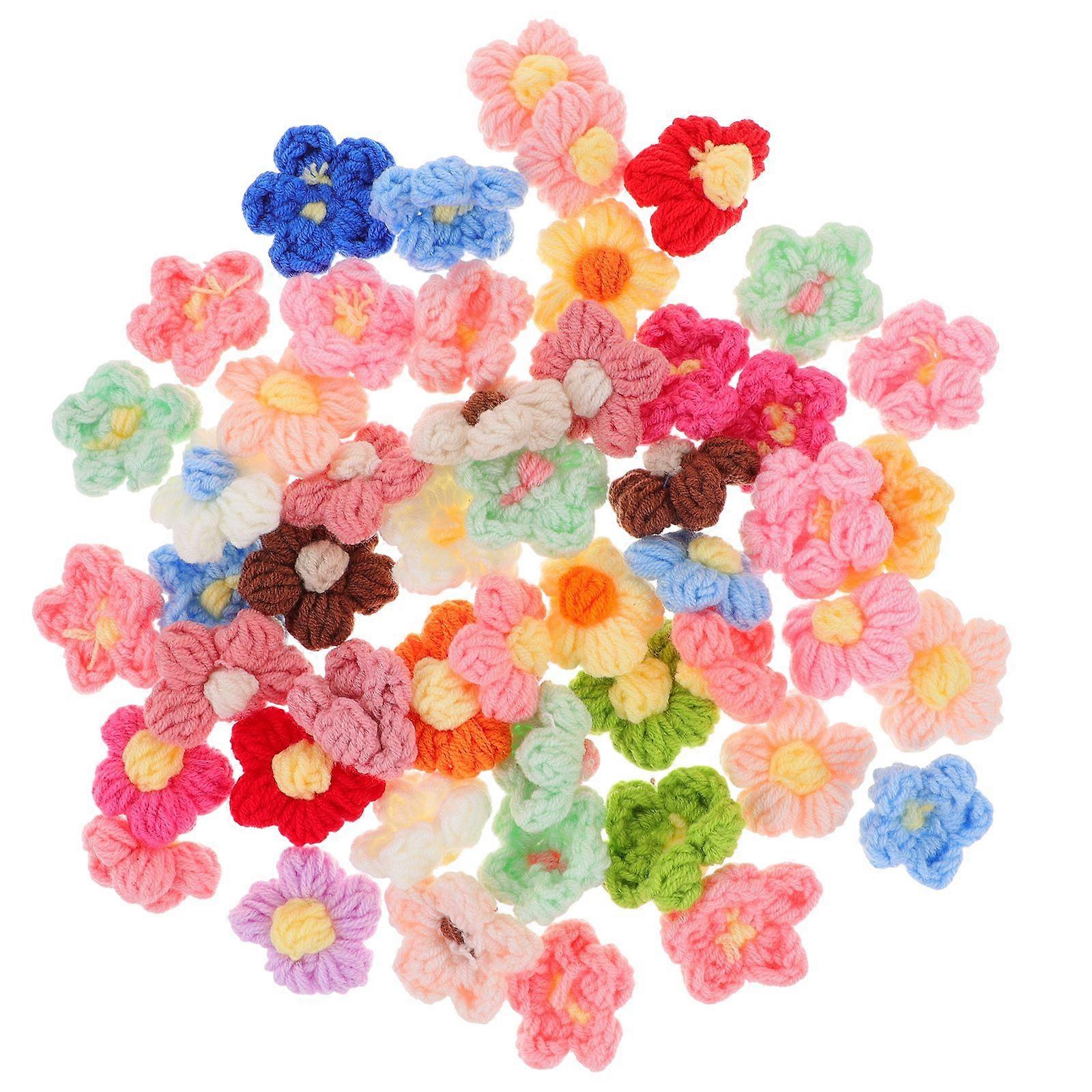 50pcs Crocheted Flower Patches Floral Clothing Accessories Diy Craft Flower Decors