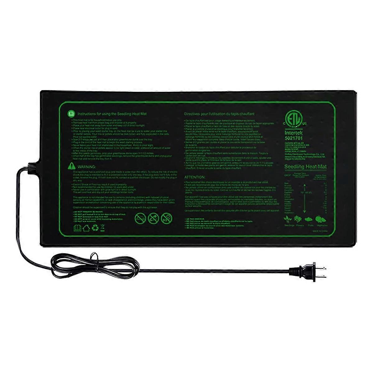 Consistent and uniform heating - Plant Heating Pads provide a stable, uniform temperature to the seedlings' root area remains between 70F and 85F to growth and germination, and are also ideal for seed start and sowing. and Waterproof - This heating pad is made of waterproof, flexible and material and -2 5.9-foot safety power cord.Easy to clean and maintain Seed Heating Pad is suitable for three standard gardening trays with dimensions of 20x10, 20x20, 20x48 for plant germination, indoor gardening, home brewing and glass container heating Nursery Heating Mat is easy to roll up and store, saving space Voltage: AC100-240V Plug Type:US Plug,it applies to Canada, India,Mexico, Thailand, the , the Philippines,Taiwan and so on. Colour:As Shown Material:plastic Package Contents: 1set x seedling heat mat Only the above package content, other products are not included. Note: Light reflection and different displays may cause the color of the item in the picture a little different from the real thing. The measurement allowed error is +/- 1-3cm.