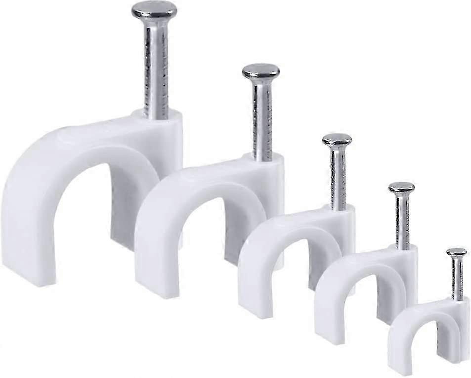 500Pcs Round Cable Ties with Steel Nail, 5 Different Size 4/5/6/8/10mm Cable Ties, Wire Fastener and Organizer, White