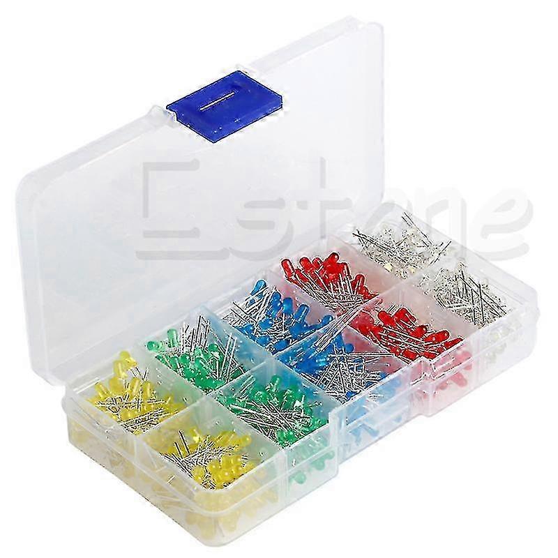 500Pcs 3mm LED Light White Yellow Red Blue Green Assortment Diodes DIY Kit New