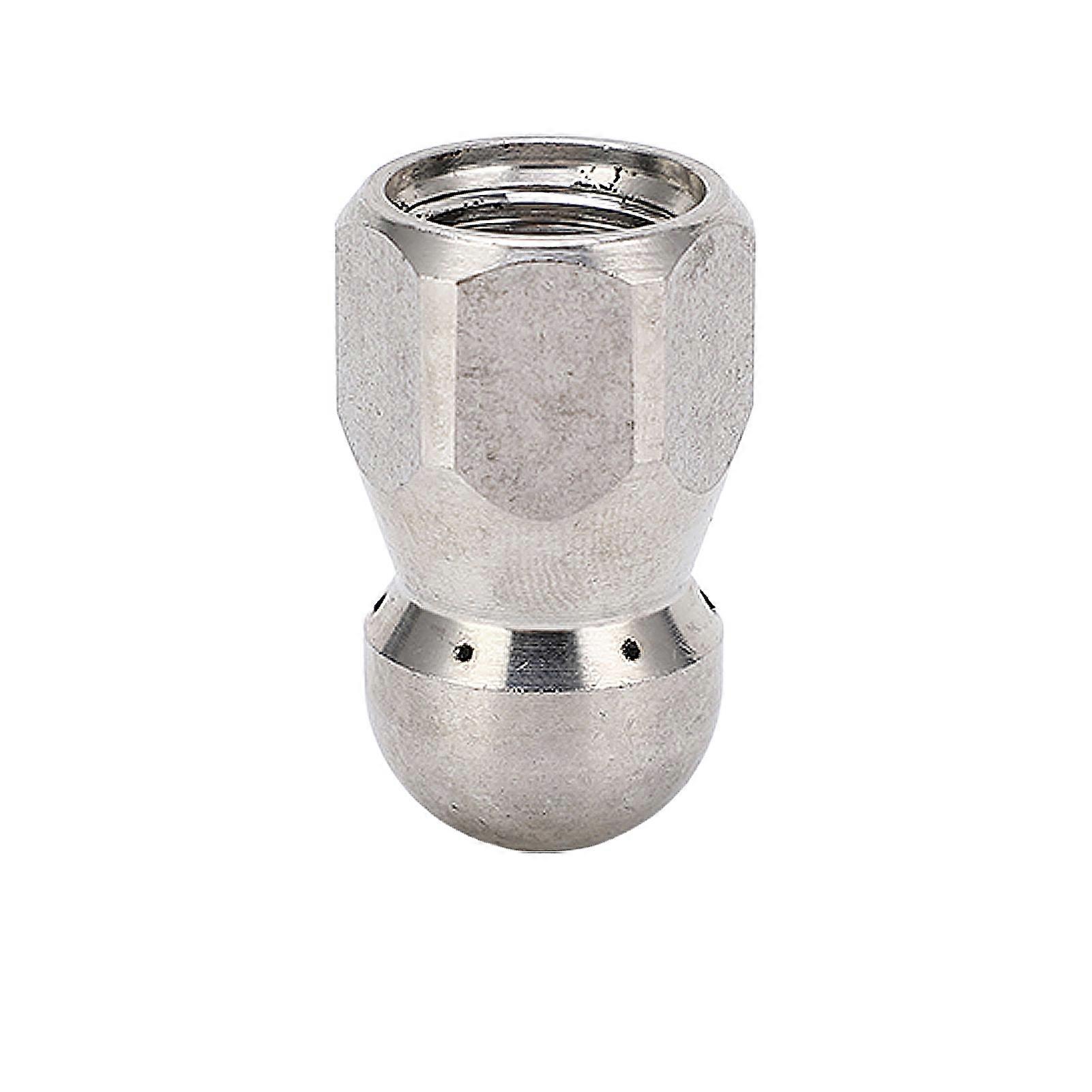 5000PSI High Pressure Washer Nozzle Pipe Dredging Cleaning Nozzle Stainless Steel Jetter Nozzle Ball Head Front 1 Rear 6 Holes G1/4in