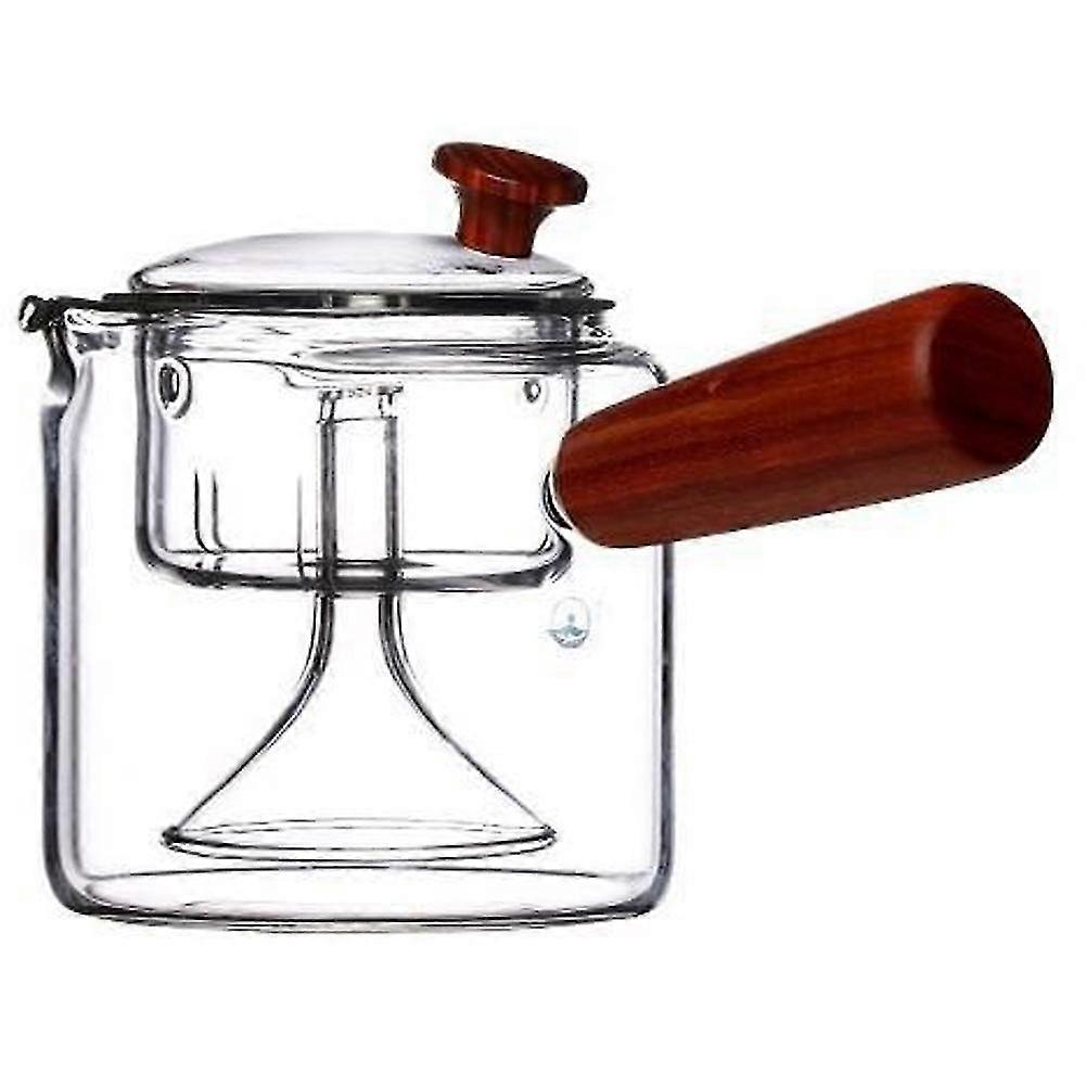 500ml Glass Teapot Wooden Handle Thickened Heat-resistant Glass Kettle Side Handle Flower Teapot Te