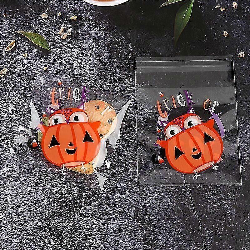 50/100 Pcs Halloween Plastic Self-Adhesive Snack Bags for Candy, Cookies, and Party Gifts